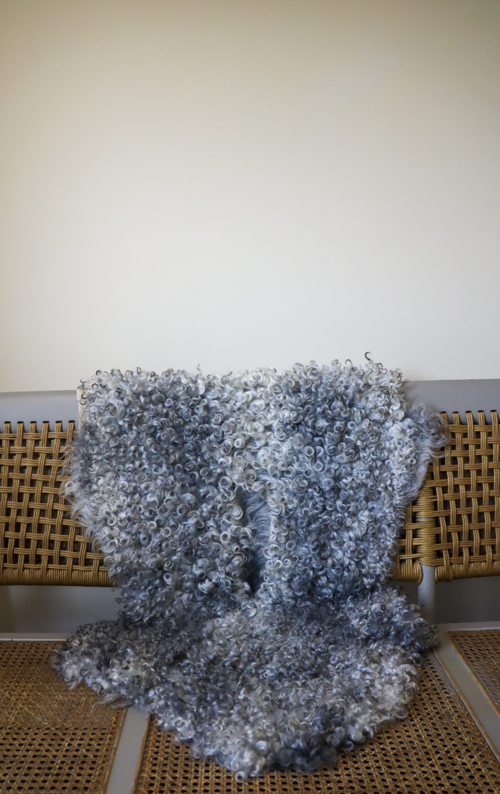 This smaller sheepskin has incredible variegation within its tight curls, and is one of the most uniquely accented hides in our stock. 100% natural colouration.